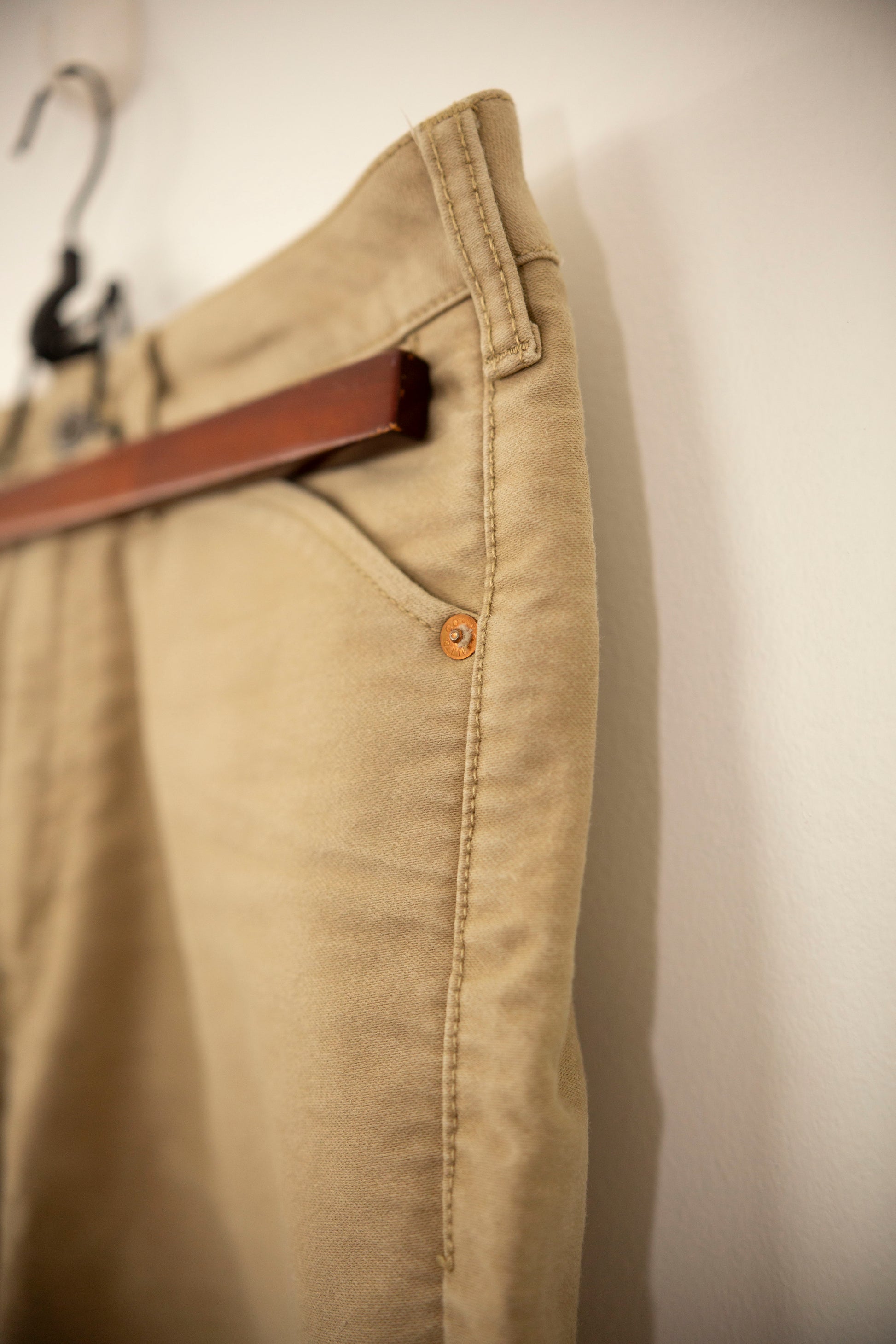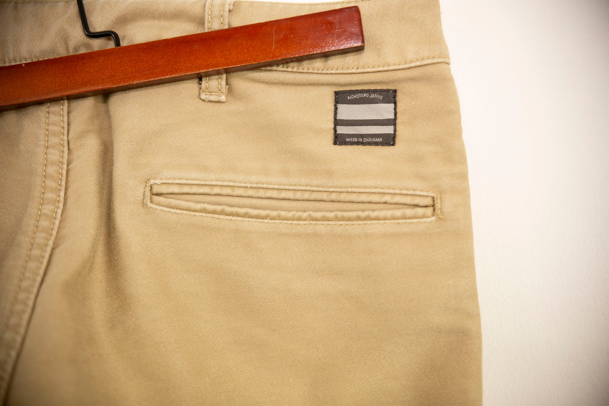 Pantalon chino de la marque Momotaro. À noter que la longueur permet d'adapter