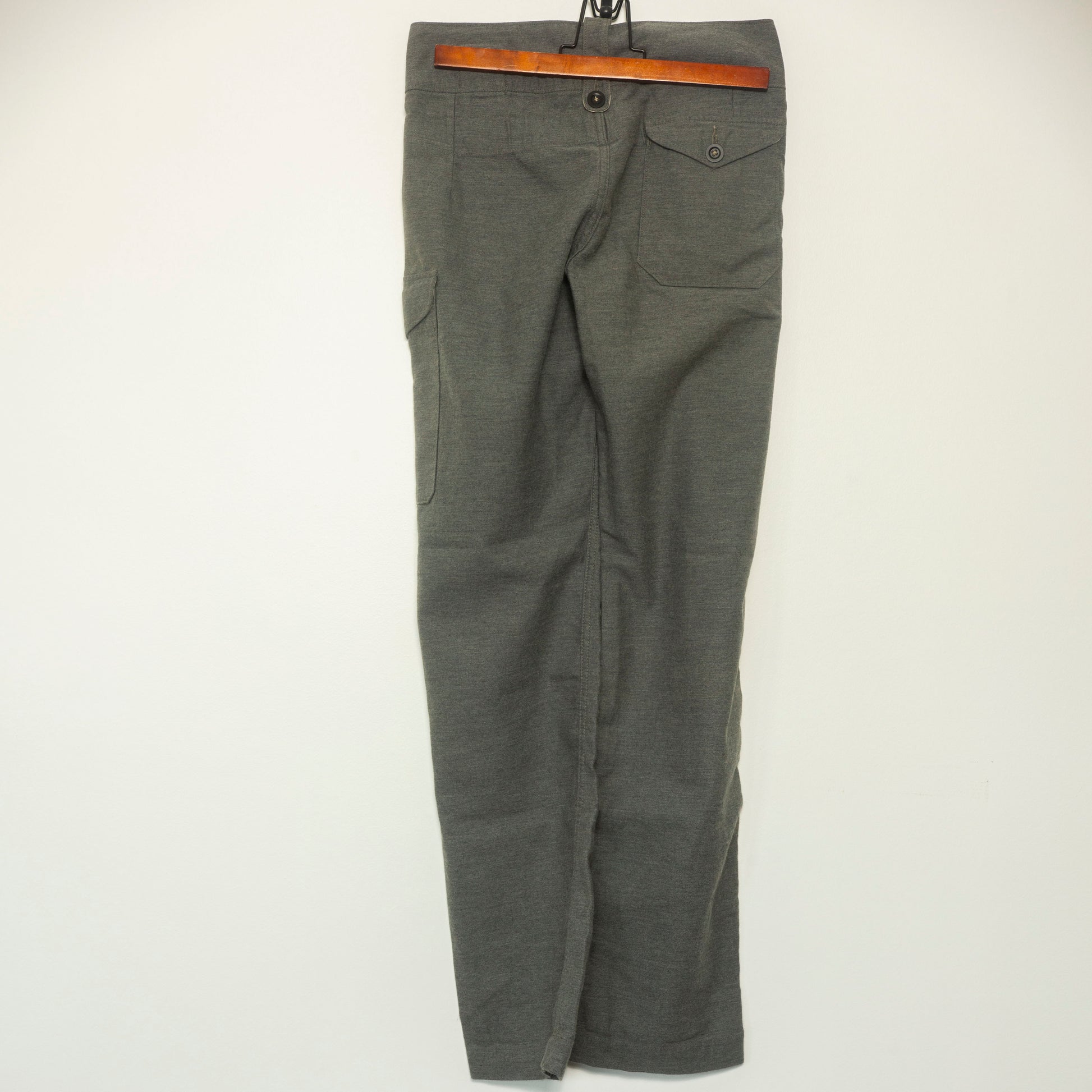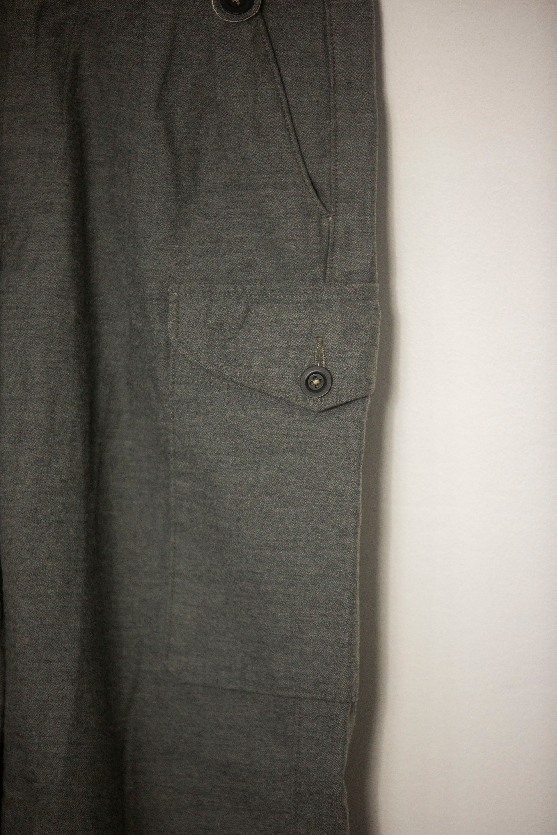 Pantalon Baker à double pinces de la marque Orslow Il dispose d'un rabas au niveau de la ceinture qui les modèles gurkha.